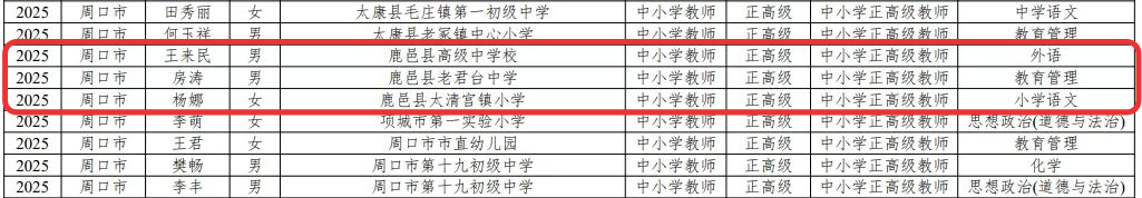 关于2025年度河南省中小学教师正高级职称评审通过人员的公示根据全省职称工作安排 通过个人申报 单位推荐 主管部门或省辖市有关部门资格审查 评委会承办部门复核 经河南省中小学教师正高级职称评审委员会组织答辩和专家评审 324名同志通过评审 含委托评审 现将评审通过人员公示如下 请予监督 如对公示人员有问题反映 请于公示期内以书面形式反馈 公示时间 2025年12月22日至2026年1月22日 邮寄地址 郑州市正光路11号 邮政编码 450018 联系方式 省人力资源和社会保障厅人才评价开发处 0371-69690195 省教育厅人事处 0371-69691268 附件 2025年度全省中小学教师正高级职称通过人员公示名单 2025年12月22日 2025年度全省中小学教师 正高级职称通过人员公示名单 ![]() ![]() |