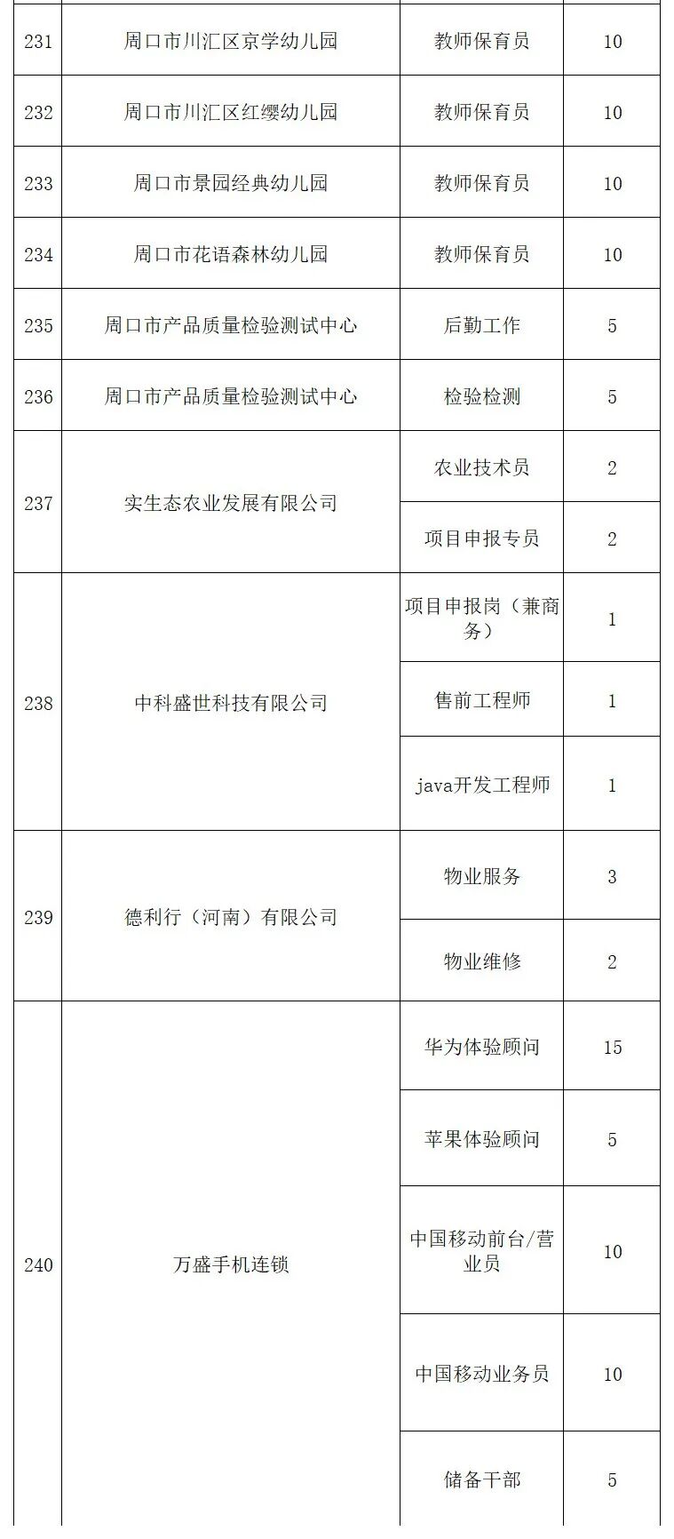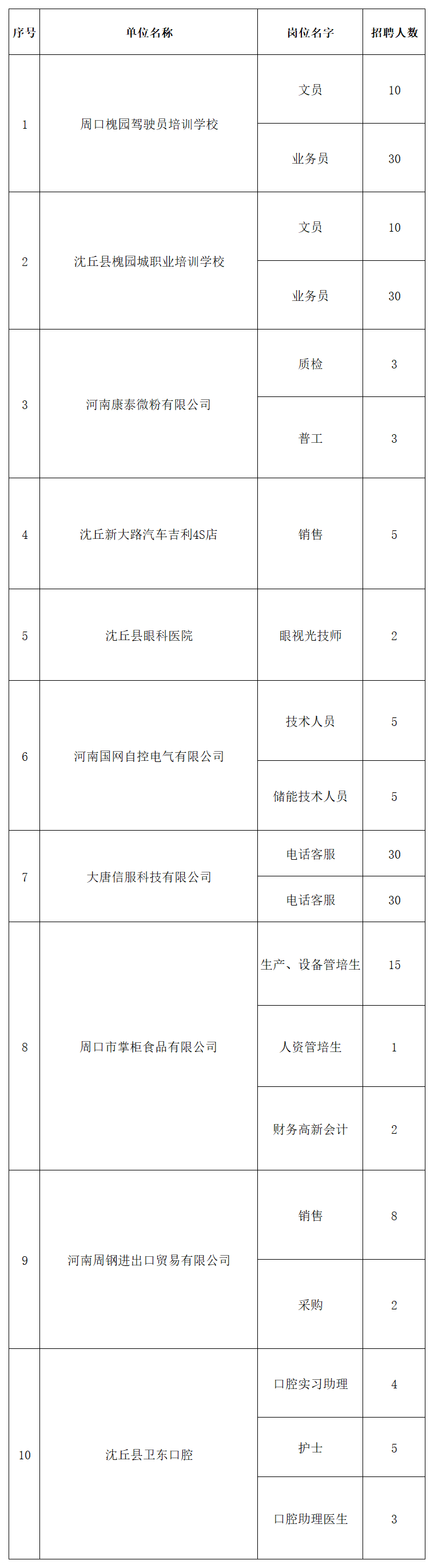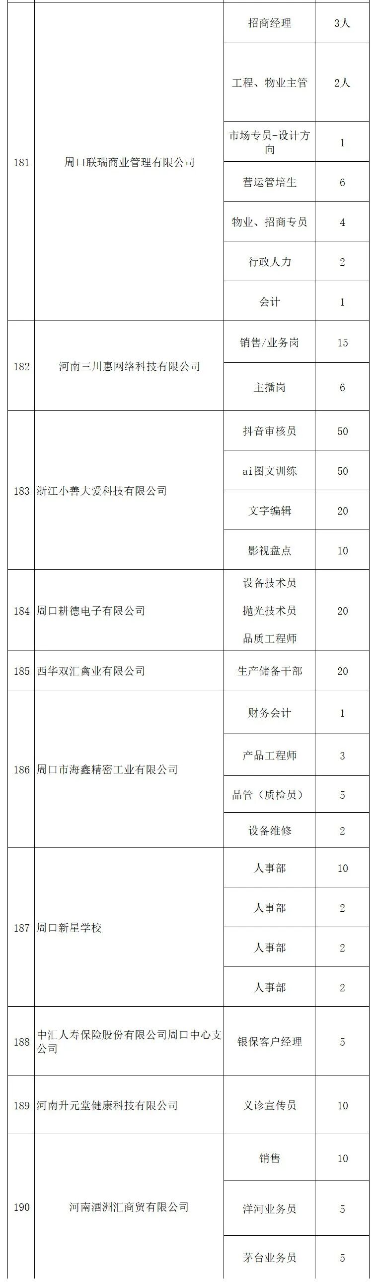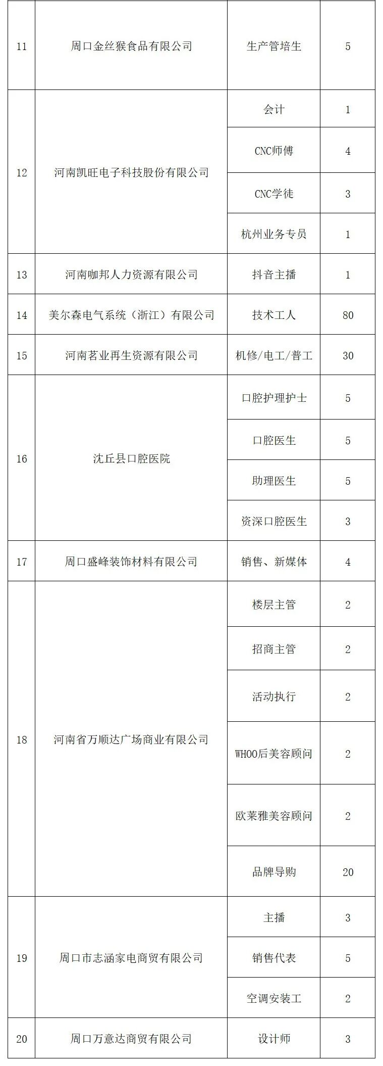 为深入实施人才强市战略 推动更多在周高校毕业生留周就业 保障重点企业用人需求 促进产业和人才深度融合 周口市将于2026年4月25日 星期六 在周口市体育中心举办第四届在周高校毕业生专场招聘会 "职"在周口 "才"有未来 时 间 2026年4月25日 星期六 上午9:00--下午17 30 地 点 周口市体育中心 主办单位 市委组织部 市委人才办 市人力资源和社会保障局 市教育体育局 承办单位 市人才工作服务中心 市创业就业服务中心 市人才集团 协办单位 市市场监督管理局 市工信局 市商务局 团市委 周口师范学院 河南科技职业大学 周口职业技术学院 周口文理职业学院 周口理工职业学院 河南省水利水电学校 周口交通技师学院 求职者可通过"周口英才""周用工"等微信小程序关注招聘会相关信息 4月25日上午9 00携带个人简历参加现场招聘会 本次招聘会将采用以线下招聘 线上直播带岗相结合的形式 充分利用自媒体优势 开展直播带岗位 企业云宣讲 企业HR进直播间互动 招聘会现场展位互动 等活动 充分布局线下+线上同频招聘新业态 保证就业促进活动覆盖面更广 影响力更大 招聘会现场同时设置职业指导 政策咨询 惠企助企政策宣传等 ![]()
