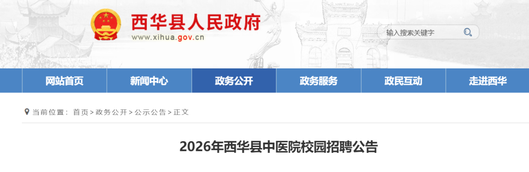 本次招聘公告于2026年4月16日在西华县人民政府网发布 请应聘人员随时关注本次招聘工作网站西华县人民政府网